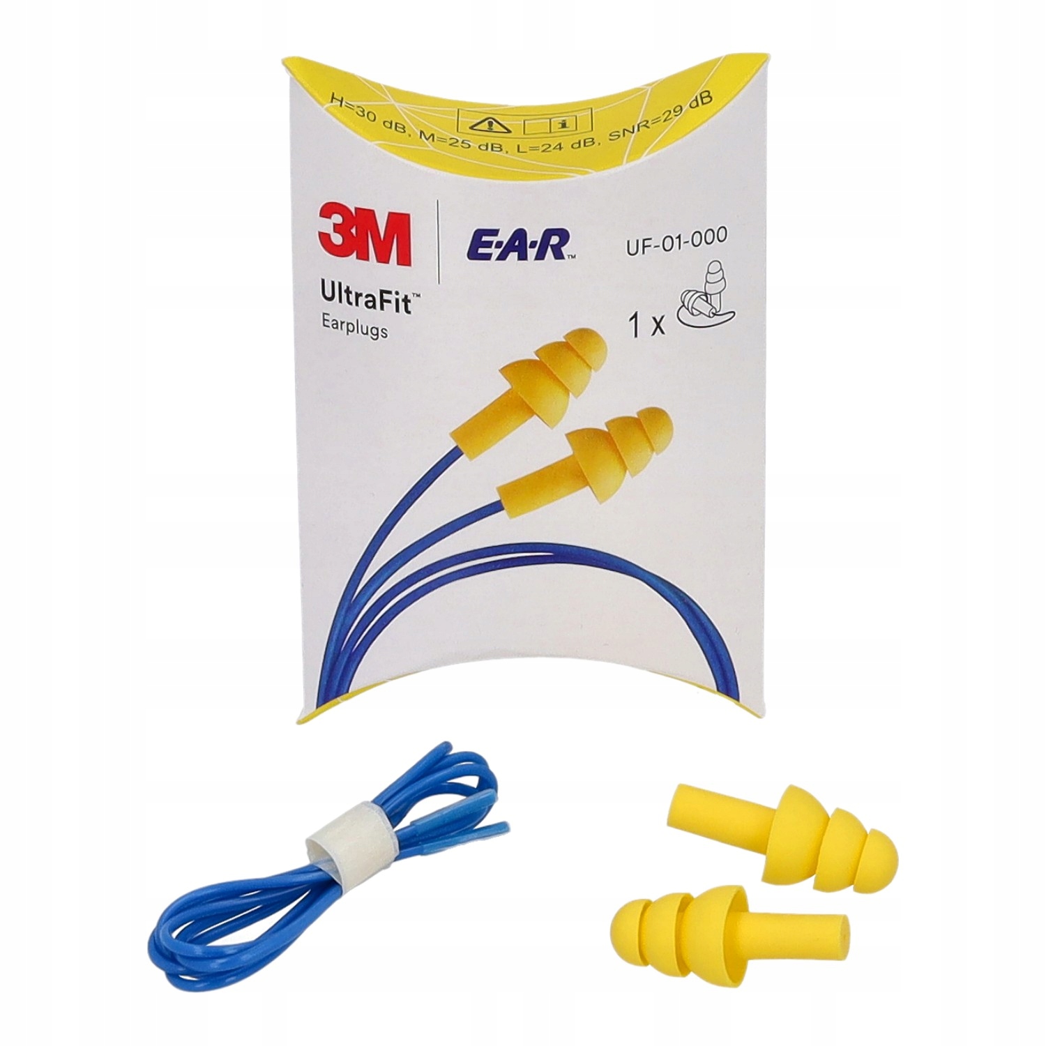 Wkładki przeciwhałasowe 3M Ultrafit UF-01-000, połączone sznurkiem, przeznaczone są do wielokrotnego użytku i dostosowane do długotrwałego stosowania w miejscach o niskim i średnim poziomie hałasu.