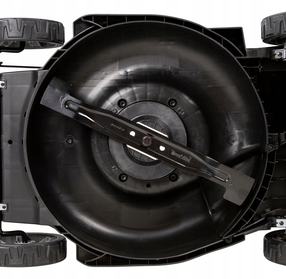 - Przeprojektowane zostało wnętrze kosiarki na bardziej przepływowe, dla lepszego zbierania trawy.