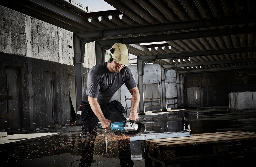 Wydajna szlifierka kątowa do cięcia i szlifowania z regulowanym tylnym uchwytem.