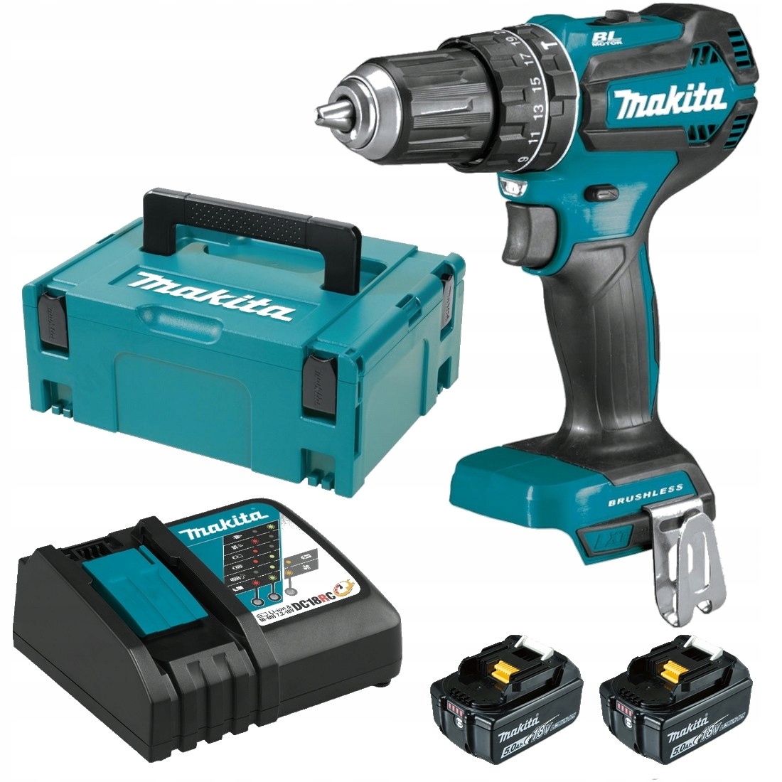- Wydajna wiertarko-wkrętarka z silnikiem bezszczotkowym do wkręcania i wiercenia z udarem lub bez, 2 biegowa przekładnia mechaniczna.