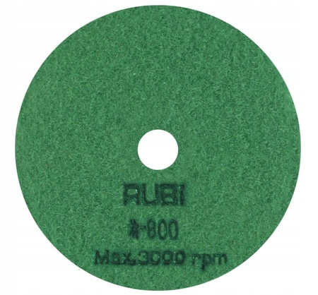 Pad polerski o średnicy 100mm mocowany jest na rzep. Pad z gradacją P800 przeznaczony jest do zgrubnej obróbki materiałów kamiennych takich jak płytki gresowe, kamień naturalny, marmur, granit i inne. Przeznaczony jest do pracy na sucho. Maksymalna prędkość obrotowa podczas użytkowania nie powinna przekraczać 3000 obrotów/min/