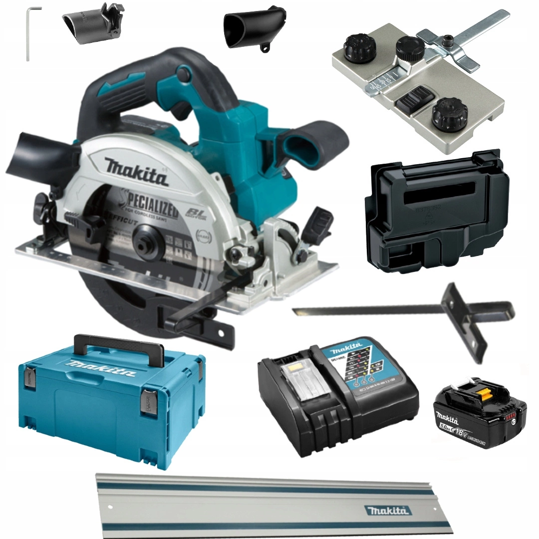 AKUMULATOROWA PILARKA TARCZOWA 18 V DHS660ZJ z ADAPTEREM SZYNY PROWADZĄCEJ, SZYNĄ o dł. 1500 mm, AKUMULATOREM BL1850B 5.0 Ah i SZYBKĄ ŁADOWARKĄ DC18RC